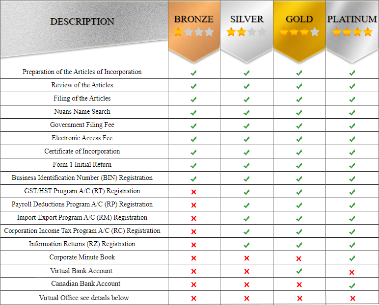 Gold package includes all the updates needed to open a Virtual bank account if the Non-Resident shareholders and directors are not able to travel to Canada.
